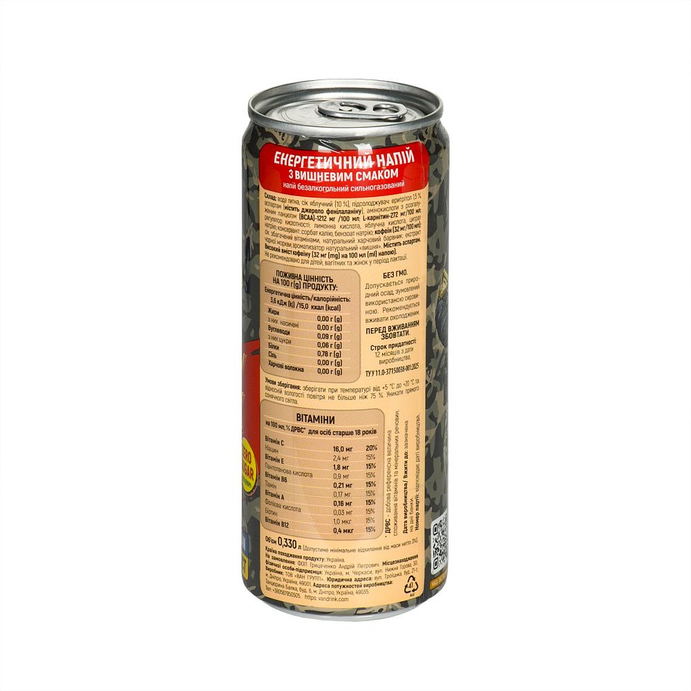 ENERGY DRINK ВИШНЯ БЕЗ ЦУКРУ – натуральний заряд енергії та витривалості, створений ветеранським бізнесом Military Black Coffee Company.