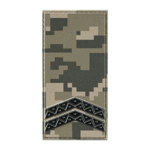 На погоні нанесені знаки, що позначають звання, фон- ММ14. Виконаний з високоякісного ПВХ матеріалу (полівінілхлориду) за технологією 3D, завдяки якій погон здається об'ємним, а зображення реалістичним. Завдяки цьому матеріалу, знаки розрізнення з часом не зіпсуються та не зітруться.