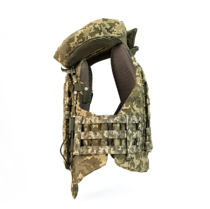 Її основою є пластикові пряжки на камербандах замість липучок Velcro. Це забезпечує комфортне та швидке надягання/знімання бронежилета й економить ваш час.