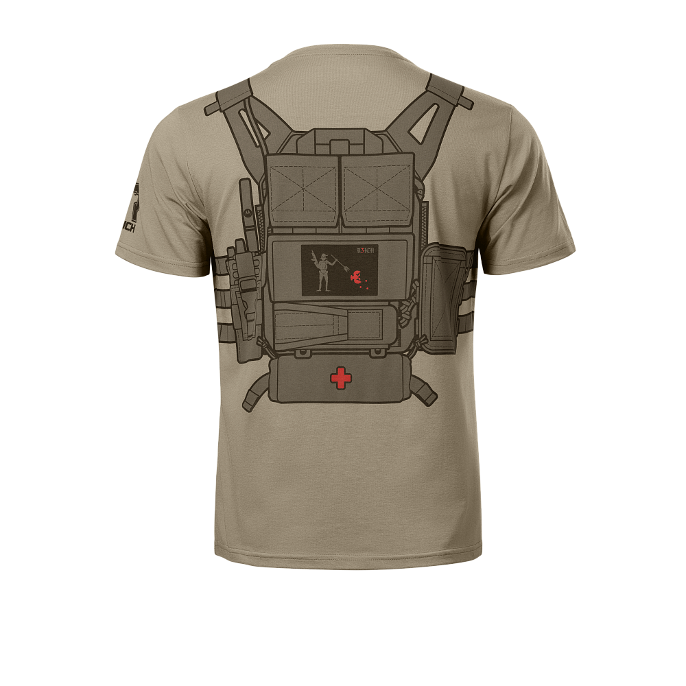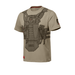Футболка виконана в тактичному стилі з ефектним 3D-принтом передньої частини бронежилета з повним спорядженням