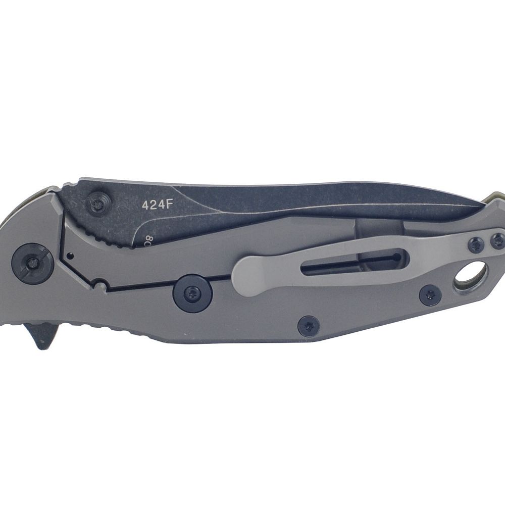Крепкий, надежный складной нож на каждый день от китайских производителей. Нож с комбинированной рукояткой из алюминия и вставки из G10 обеспечивает хороший, уверенный хват даже мокрыми руками. Клинок сделан с одной из лучших китайских сталей - 8Cr13MoV, аналогом японской AUS-8. Открывается в одно касание. Такое раскрытие лезвия обеспечивает двухсторонняя выемка на лезвии в основании клинка и позволяющий с одинаковым комфортом открывать его как правше, так и левше. Во избежание несчастных случаев с непроизвольным закрытием лезвия, нож оборудован простым, надежным и проверенным временем замком по типу Frame Lock. В то время как съемная клипса обеспечит Вам комфортное и надежное хранение и ношение данного изделия в кармане, на поясе или снаряжении