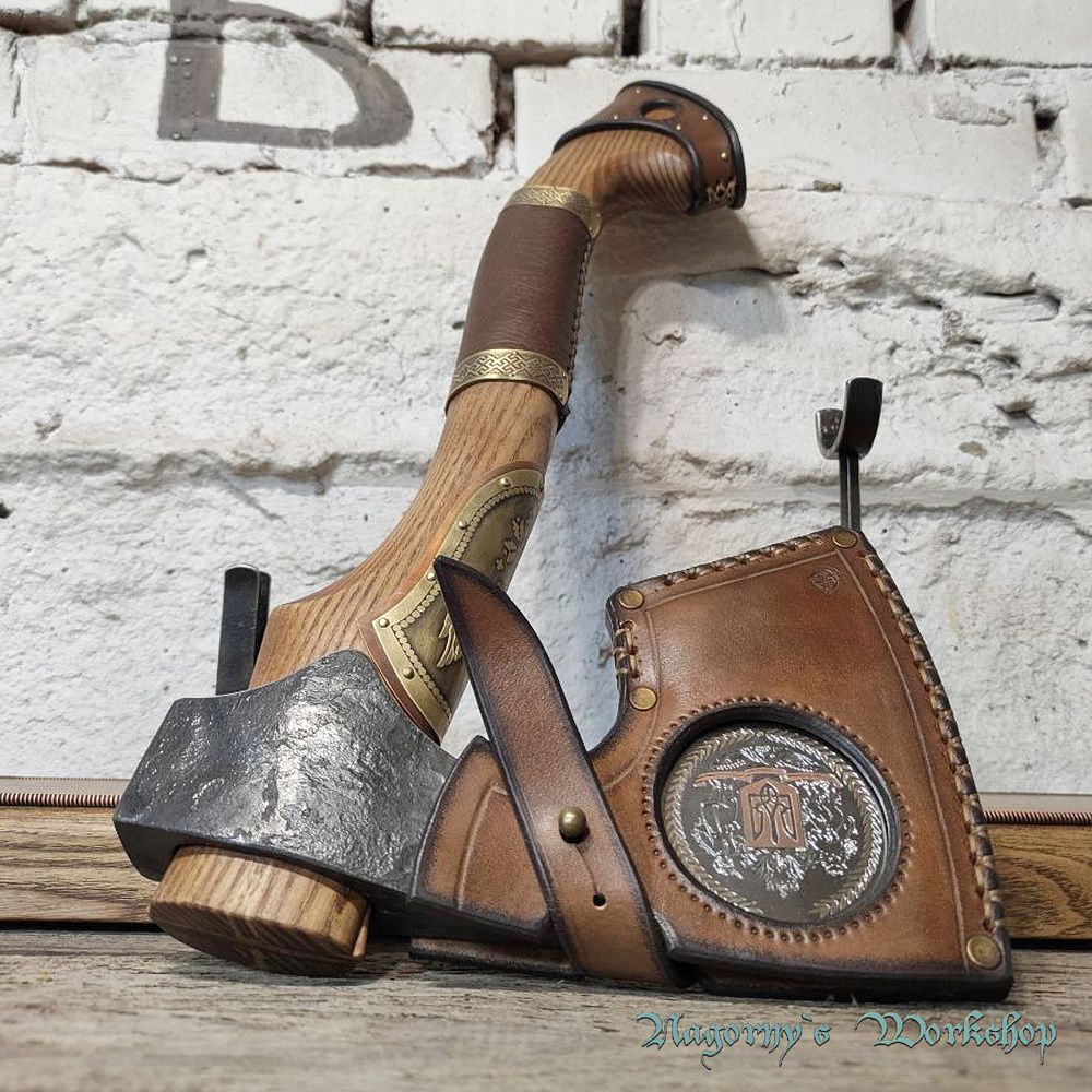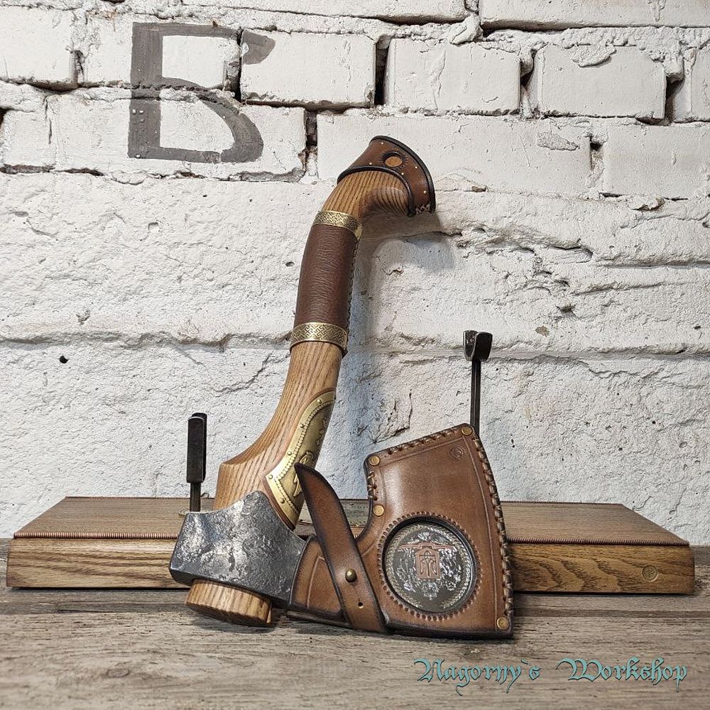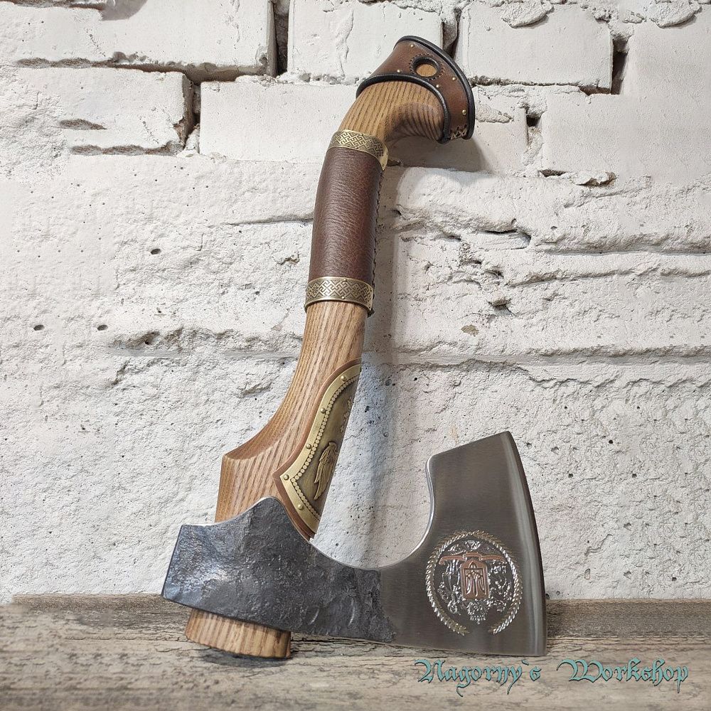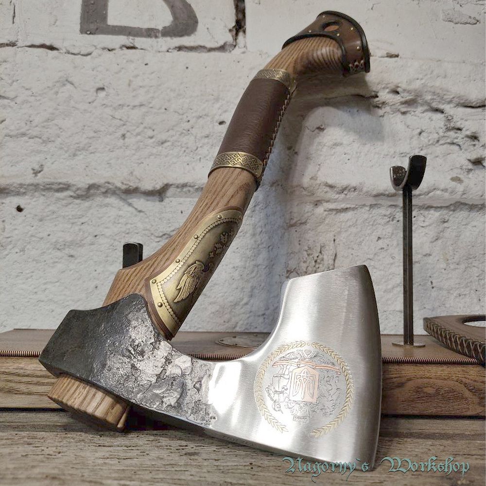 Голова сокири викована прекрасним майстром з Франківська, за стародавнім методом на вугільному горні.