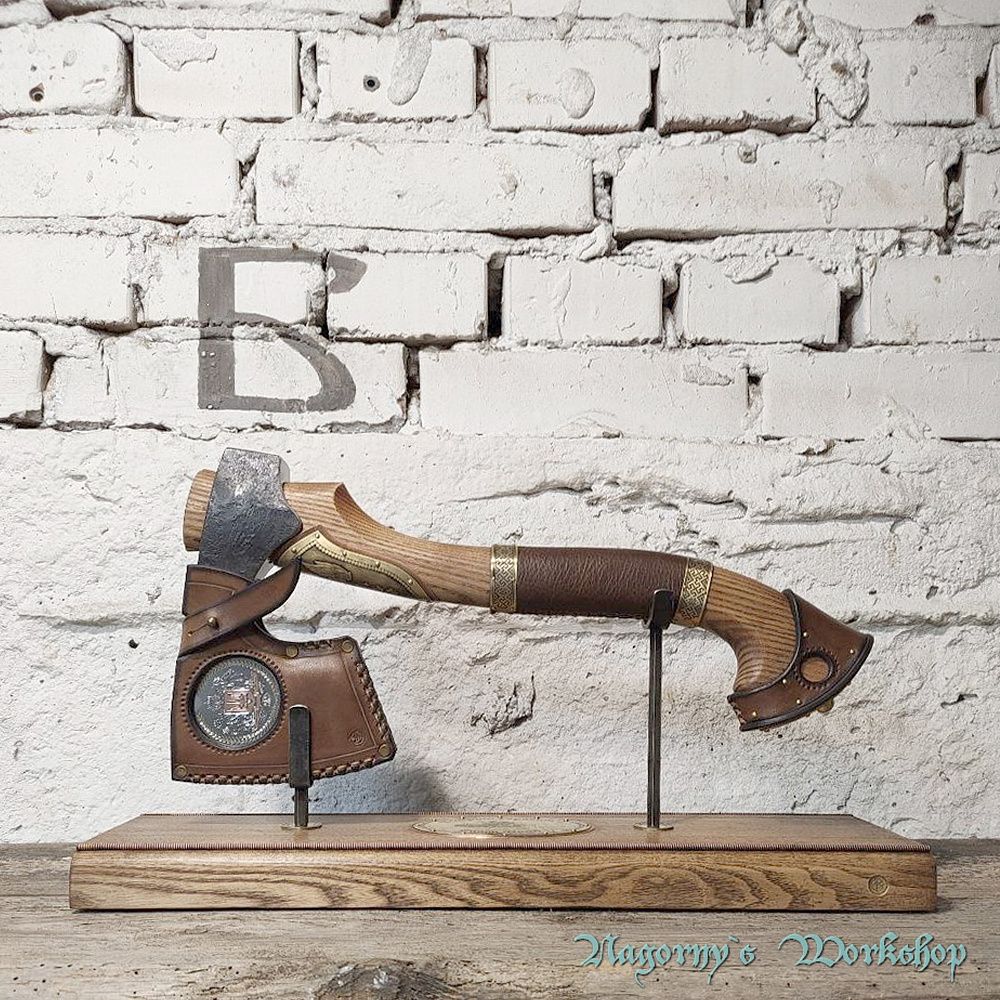 Вишукана сокира від відомих українських майстрів, виготовлена зі сталі підбитого ворожого танку.