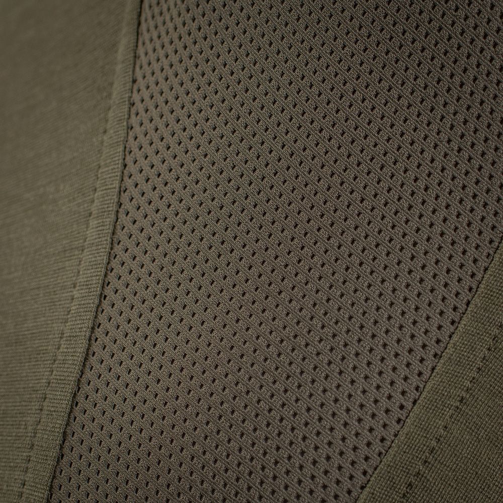 Спинка и торс рубашки изготовлены из трикотажного материала Polartec fire resist (модакрил, лиоцелл, спан). Наибольшую процентную долю в составе этого материала занимает модакрил. Ткани изготовлены с включением этого синтетического волокна являются устойчивыми к огню и, соответственно, возгоранию. В сочетании с другими компонентами, которые есть в составе материала Polartec fire resist, образуется уникальная комбинация огне- и водостойкости, мягкости и эластичности.